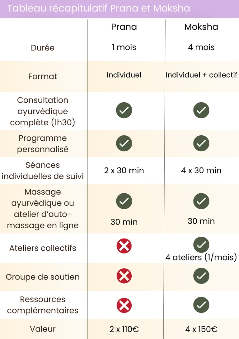 C'est en partant de ce constat que j'ai créé les Programmes "Prana - Vitalité" et "Moksha - Délivrance", qui allient sciences modernes et sagesse ancestrale de l'Ayurvéda